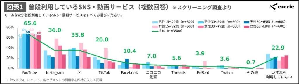 図表1 普段利用しているSNS・動画サービス(複数回答)※スクリーニング調査より