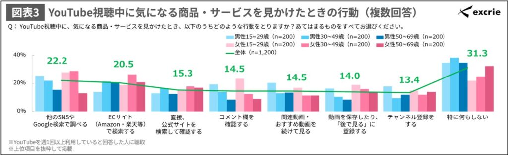 図表3 YouTube視聴中に気になる商品・サービスを見かけたときの行動(複数回答)